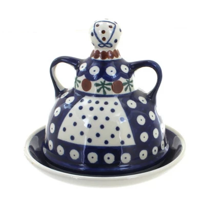 5″ tall, Plate – 5.25″ diameter – great for cheese or butter! The Art of Polish Pottery, as we know it today, started as local folk art centuries ago in the German province of Silesia. The first known pieces of “Bunzlauer” stoneware dating back to the 16th century were crafted by hand and decorated with a folk art stamping technique using potatoes. Original designs were inspired by the peacock feather using the colors of cobalt blue, sage green and ferrous red. These designs and colors are still the inspiration for modern day patterns.Today, skilled Polish artists still individually handcraft and hand decorate each piece using small sponges to stamp each pattern and color. After the process of mixing ingredients, molding the pottery, applying the decorations and glaze, the pottery is twice fired. This process makes the pottery extremely durable, it will not crack or chip easily, and it is perfect for use in the microwave, dishwasher, oven and freezer. Along with our pottery, we have sourced a range of absolutely beautiful hand blown glassware from Poland. It is the perfect addition to your Polish Pottery Collection!