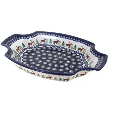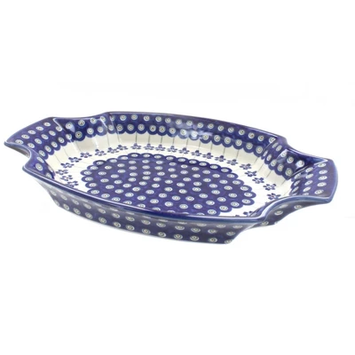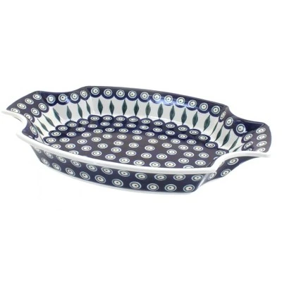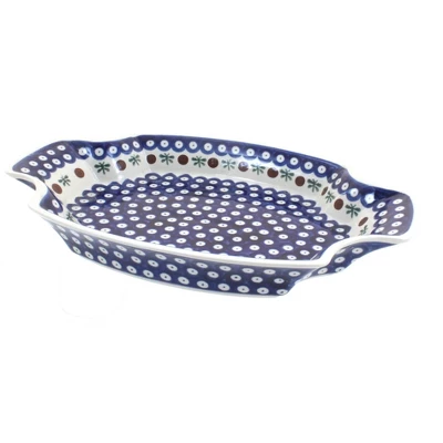 13.0″ x 8.75″ – great for serving your main course or appetizers! The Art of Polish Pottery, as we know it today, started as local folk art centuries ago in the German province of Silesia. The first known pieces of “Bunzlauer” stoneware dating back to the 16th century were crafted by hand and decorated with a folk art stamping technique using potatoes. Original designs were inspired by the peacock feather using the colors of cobalt blue, sage green and ferrous red. These designs and colors are still the inspiration for modern day patterns.Today, skilled Polish artists still individually handcraft and hand decorate each piece using small sponges to stamp each pattern and color. After the process of mixing ingredients, molding the pottery, applying the decorations and glaze, the pottery is twice fired. This process makes the pottery extremely durable, it will not crack or chip easily, and it is perfect for use in the microwave, dishwasher, oven and freezer. Along with our pottery, we have sourced a range of absolutely beautiful hand blown glassware from Poland. It is the perfect addition to your Polish Pottery Collection!