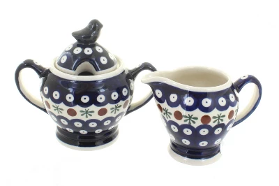 Refined ceramic cream and sugar set is the perfect companion for your daily pick-me-up with a bird topper for a vintage feel. Versatile designs match your decor so you can leave it out on display. Sugar Bowl-6-inch diameter x 5.25 inches tall. Creamer-0.75 cup capacity, 3.5 inches tall. The Art of Polish Pottery, as we know it today, started as local folk art centuries ago in the German province of Silesia. The first known pieces of “Bunzlauer” stoneware dating back to the 16th century were crafted by hand and decorated with a folk art stamping technique using potatoes. Original designs were inspired by the peacock feather using the colors of cobalt blue, sage green and ferrous red. These designs and colors are still the inspiration for modern day patterns.Today, skilled Polish artists still individually handcraft and hand decorate each piece using small sponges to stamp each pattern and color. After the process of mixing ingredients, molding the pottery, applying the decorations and glaze, the pottery is twice fired. This process makes the pottery extremely durable, it will not crack or chip easily, and it is perfect for use in the microwave, dishwasher, oven and freezer. Along with our pottery, we have sourced a range of absolutely beautiful hand blown glassware from Poland. It is the perfect addition to your Polish Pottery Collection!