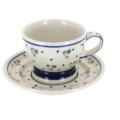 A delicate cup and saucer that works for tea and coffee – 7 oz. capacity. Saucer – 6.5″ diameter, Cup – 3.75″ diameter x 3″ high. The Art of Polish Pottery, as we know it today, started as local folk art centuries ago in the German province of Silesia. The first known pieces of “Bunzlauer” stoneware dating back to the 16th century were crafted by hand and decorated with a folk art stamping technique using potatoes. Original designs were inspired by the peacock feather using the colors of cobalt blue, sage green and ferrous red. These designs and colors are still the inspiration for modern day patterns.Today, skilled Polish artists still individually handcraft and hand decorate each piece using small sponges to stamp each pattern and color. After the process of mixing ingredients, molding the pottery, applying the decorations and glaze, the pottery is twice fired. This process makes the pottery extremely durable, it will not crack or chip easily, and it is perfect for use in the microwave, dishwasher, oven and freezer. Along with our pottery, we have sourced a range of absolutely beautiful hand blown glassware from Poland. It is the perfect addition to your Polish Pottery Collection!