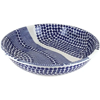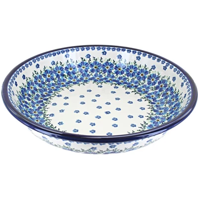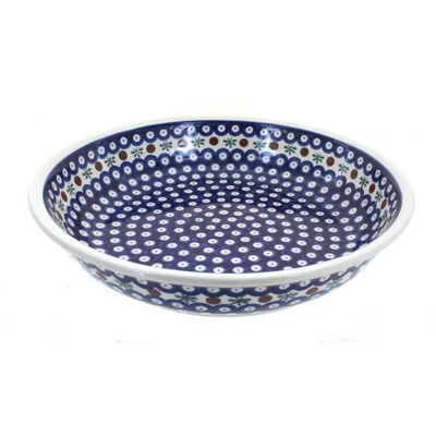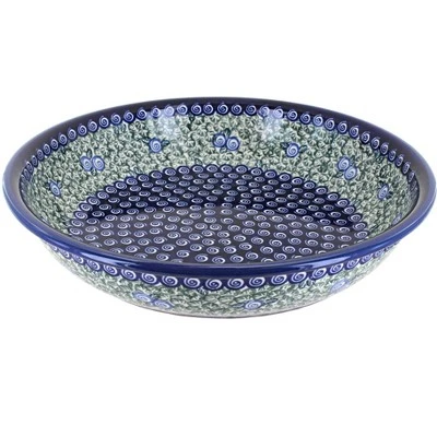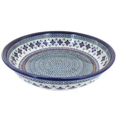 Great serving bowl for any main dish – 13″ diameter x 2.75″ deep. The Art of Polish Pottery, as we know it today, started as local folk art centuries ago in the German province of Silesia. The first known pieces of “Bunzlauer” stoneware dating back to the 16th century were crafted by hand and decorated with a folk art stamping technique using potatoes. Original designs were inspired by the peacock feather using the colors of cobalt blue, sage green and ferrous red. These designs and colors are still the inspiration for modern day patterns.Today, skilled Polish artists still individually handcraft and hand decorate each piece using small sponges to stamp each pattern and color. After the process of mixing ingredients, molding the pottery, applying the decorations and glaze, the pottery is twice fired. This process makes the pottery extremely durable, it will not crack or chip easily, and it is perfect for use in the microwave, dishwasher, oven and freezer. Along with our pottery, we have sourced a range of absolutely beautiful hand blown glassware from Poland. It is the perfect addition to your Polish Pottery Collection!