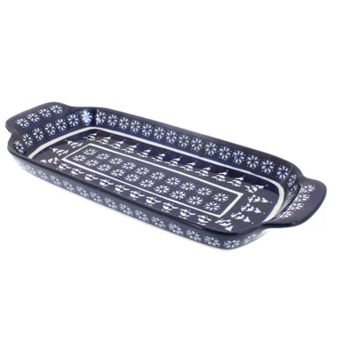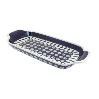 13.25″ long x 5.75″ wide – great dish for serving a loaf of bread with your dinner or appetizers on a buffet! The Art of Polish Pottery, as we know it today, started as local folk art centuries ago in the German province of Silesia. The first known pieces of “Bunzlauer” stoneware dating back to the 16th century were crafted by hand and decorated with a folk art stamping technique using potatoes. Original designs were inspired by the peacock feather using the colors of cobalt blue, sage green and ferrous red. These designs and colors are still the inspiration for modern day patterns.Today, skilled Polish artists still individually handcraft and hand decorate each piece using small sponges to stamp each pattern and color. After the process of mixing ingredients, molding the pottery, applying the decorations and glaze, the pottery is twice fired. This process makes the pottery extremely durable, it will not crack or chip easily, and it is perfect for use in the microwave, dishwasher, oven and freezer. Along with our pottery, we have sourced a range of absolutely beautiful hand blown glassware from Poland. It is the perfect addition to your Polish Pottery Collection!