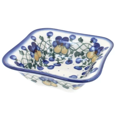 From WR Unikat – 5.25″ wide, 1.75″ tall The Art of Polish Pottery, as we know it today, started as local folk art centuries ago in the German province of Silesia. The first known pieces of “Bunzlauer” stoneware dating back to the 16th century were crafted by hand and decorated with a folk art stamping technique using potatoes. Original designs were inspired by the peacock feather using the colors of cobalt blue, sage green and ferrous red. These designs and colors are still the inspiration for modern day patterns.Today, skilled Polish artists still individually handcraft and hand decorate each piece using small sponges to stamp each pattern and color. After the process of mixing ingredients, molding the pottery, applying the decorations and glaze, the pottery is twice fired. This process makes the pottery extremely durable, it will not crack or chip easily, and it is perfect for use in the microwave, dishwasher, oven and freezer. Along with our pottery, we have sourced a range of absolutely beautiful hand blown glassware from Poland. It is the perfect addition to your Polish Pottery Collection!