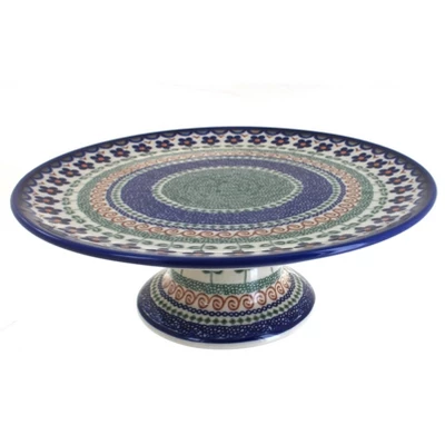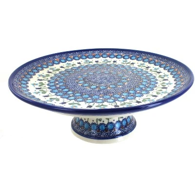 A perfect pedestal for your best dessert – 10.5″ diameter, 3″ high. We’ve had many requests for this item! The Art of Polish Pottery, as we know it today, started as local folk art centuries ago in the German province of Silesia. The first known pieces of “Bunzlauer” stoneware dating back to the 16th century were crafted by hand and decorated with a folk art stamping technique using potatoes. Original designs were inspired by the peacock feather using the colors of cobalt blue, sage green and ferrous red. These designs and colors are still the inspiration for modern day patterns.Today, skilled Polish artists still individually handcraft and hand decorate each piece using small sponges to stamp each pattern and color. After the process of mixing ingredients, molding the pottery, applying the decorations and glaze, the pottery is twice fired. This process makes the pottery extremely durable, it will not crack or chip easily, and it is perfect for use in the microwave, dishwasher, oven and freezer. Along with our pottery, we have sourced a range of absolutely beautiful hand blown glassware from Poland. It is the perfect addition to your Polish Pottery Collection!