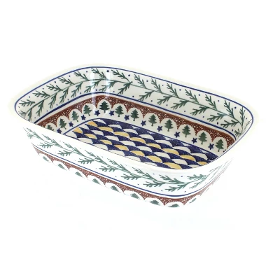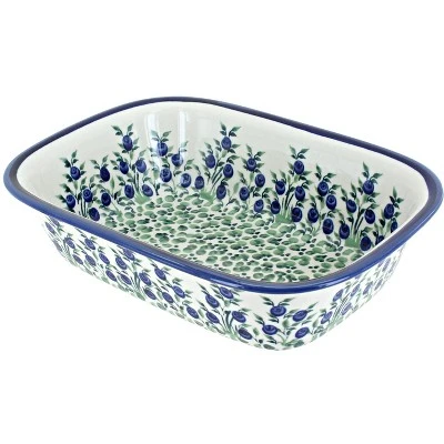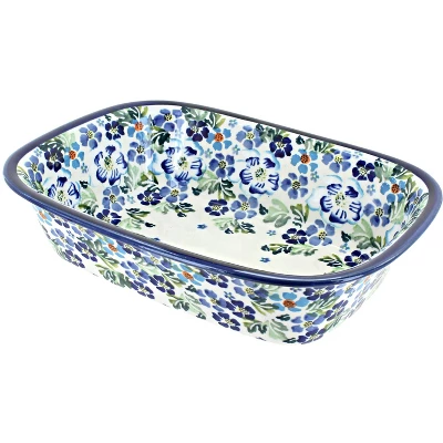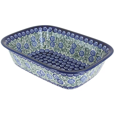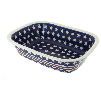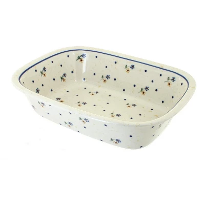 Perfect for baking cake, breads, and meatloaf. Bake, serve, and store in_x000D_ heat and chip resistant ceramic that is dishwasher safe for easy _x000D_cleanup. Elegant, hand-painted designs showcase your dish to serve right_x000D_ from the pan. 9.6 inches long x 7.2 inches wide x 2.5 inches deep. The Art of Polish Pottery, as we know it today, started as local folk art centuries ago in the German province of Silesia. The first known pieces of “Bunzlauer” stoneware dating back to the 16th century were crafted by hand and decorated with a folk art stamping technique using potatoes. Original designs were inspired by the peacock feather using the colors of cobalt blue, sage green and ferrous red. These designs and colors are still the inspiration for modern day patterns.Today, skilled Polish artists still individually handcraft and hand decorate each piece using small sponges to stamp each pattern and color. After the process of mixing ingredients, molding the pottery, applying the decorations and glaze, the pottery is twice fired. This process makes the pottery extremely durable, it will not crack or chip easily, and it is perfect for use in the microwave, dishwasher, oven and freezer. Along with our pottery, we have sourced a range of absolutely beautiful hand blown glassware from Poland. It is the perfect addition to your Polish Pottery Collection!