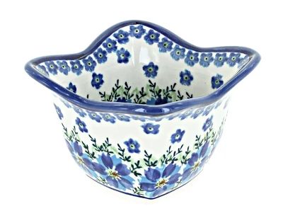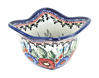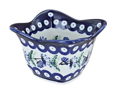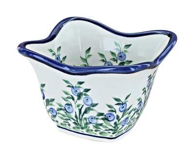 A great size for condiments, dip fresh bread in oil and vinegar or use for individual dips. Mix and match patterns for entertaining guests. 3.75” square x 2.5” deep. The Art of Polish Pottery, as we know it today, started as local folk art centuries ago in the German province of Silesia. The first known pieces of “Bunzlauer” stoneware dating back to the 16th century were crafted by hand and decorated with a folk art stamping technique using potatoes. Original designs were inspired by the peacock feather using the colors of cobalt blue, sage green and ferrous red. These designs and colors are still the inspiration for modern day patterns.Today, skilled Polish artists still individually handcraft and hand decorate each piece using small sponges to stamp each pattern and color. After the process of mixing ingredients, molding the pottery, applying the decorations and glaze, the pottery is twice fired. This process makes the pottery extremely durable, it will not crack or chip easily, and it is perfect for use in the microwave, dishwasher, oven and freezer. Along with our pottery, we have sourced a range of absolutely beautiful hand blown glassware from Poland. It is the perfect addition to your Polish Pottery Collection!