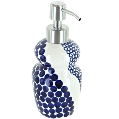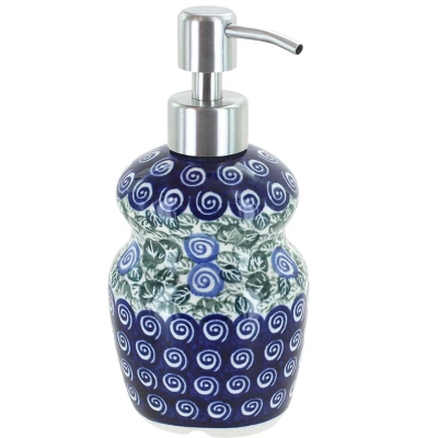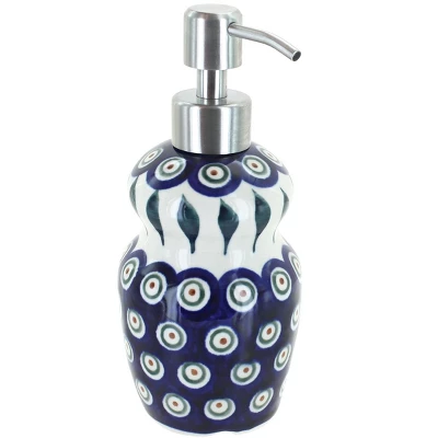 Soap dispensers from Zaklady have a unique easy to hold shape and stainless steel soap pump. Get in your favorite pattern to keep by the bathroom or kitchen sink! 6.75 inches tall; 3.25 inches wide. The Art of Polish Pottery, as we know it today, started as local folk art centuries ago in the German province of Silesia. The first known pieces of “Bunzlauer” stoneware dating back to the 16th century were crafted by hand and decorated with a folk art stamping technique using potatoes. Original designs were inspired by the peacock feather using the colors of cobalt blue, sage green and ferrous red. These designs and colors are still the inspiration for modern day patterns.Today, skilled Polish artists still individually handcraft and hand decorate each piece using small sponges to stamp each pattern and color. After the process of mixing ingredients, molding the pottery, applying the decorations and glaze, the pottery is twice fired. This process makes the pottery extremely durable, it will not crack or chip easily, and it is perfect for use in the microwave, dishwasher, oven and freezer. Along with our pottery, we have sourced a range of absolutely beautiful hand blown glassware from Poland. It is the perfect addition to your Polish Pottery Collection!