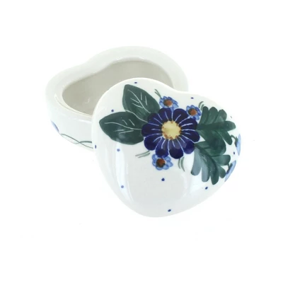 From WR Unikat – heart box for someone special – 3.5″ x 3.5″. Great Gift Idea!! The Art of Polish Pottery, as we know it today, started as local folk art centuries ago in the German province of Silesia. The first known pieces of “Bunzlauer” stoneware dating back to the 16th century were crafted by hand and decorated with a folk art stamping technique using potatoes. Original designs were inspired by the peacock feather using the colors of cobalt blue, sage green and ferrous red. These designs and colors are still the inspiration for modern day patterns.Today, skilled Polish artists still individually handcraft and hand decorate each piece using small sponges to stamp each pattern and color. After the process of mixing ingredients, molding the pottery, applying the decorations and glaze, the pottery is twice fired. This process makes the pottery extremely durable, it will not crack or chip easily, and it is perfect for use in the microwave, dishwasher, oven and freezer. Along with our pottery, we have sourced a range of absolutely beautiful hand blown glassware from Poland. It is the perfect addition to your Polish Pottery Collection!