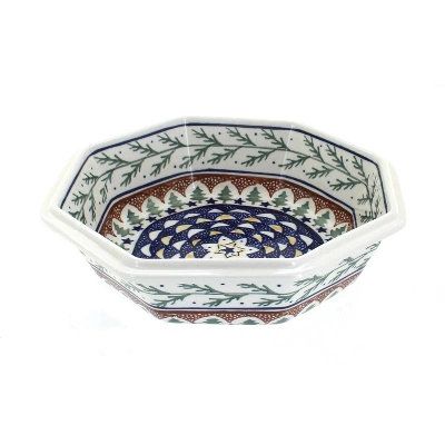8″ diameter – great serving bowl! The Art of Polish Pottery, as we know it today, started as local folk art centuries ago in the German province of Silesia. The first known pieces of “Bunzlauer” stoneware dating back to the 16th century were crafted by hand and decorated with a folk art stamping technique using potatoes. Original designs were inspired by the peacock feather using the colors of cobalt blue, sage green and ferrous red. These designs and colors are still the inspiration for modern day patterns.Today, skilled Polish artists still individually handcraft and hand decorate each piece using small sponges to stamp each pattern and color. After the process of mixing ingredients, molding the pottery, applying the decorations and glaze, the pottery is twice fired. This process makes the pottery extremely durable, it will not crack or chip easily, and it is perfect for use in the microwave, dishwasher, oven and freezer. Along with our pottery, we have sourced a range of absolutely beautiful hand blown glassware from Poland. It is the perfect addition to your Polish Pottery Collection!