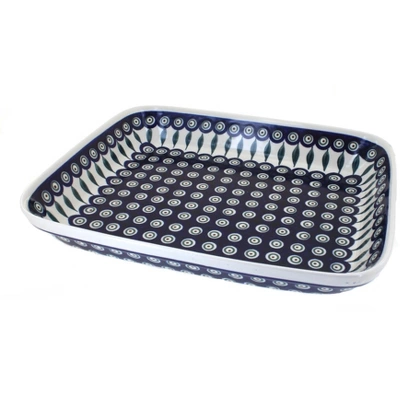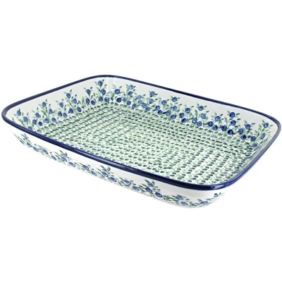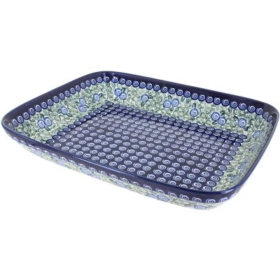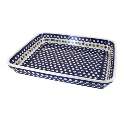 Polish pottery is highly regarded for its even baking and easy cleanup. Prepare brownies and casseroles, then serve straight from the oven to admire the hand painted designs. 13 x 10.5 x 2 inches deep. The Art of Polish Pottery, as we know it today, started as local folk art centuries ago in the German province of Silesia. The first known pieces of “Bunzlauer” stoneware dating back to the 16th century were crafted by hand and decorated with a folk art stamping technique using potatoes. Original designs were inspired by the peacock feather using the colors of cobalt blue, sage green and ferrous red. These designs and colors are still the inspiration for modern day patterns.Today, skilled Polish artists still individually handcraft and hand decorate each piece using small sponges to stamp each pattern and color. After the process of mixing ingredients, molding the pottery, applying the decorations and glaze, the pottery is twice fired. This process makes the pottery extremely durable, it will not crack or chip easily, and it is perfect for use in the microwave, dishwasher, oven and freezer. Along with our pottery, we have sourced a range of absolutely beautiful hand blown glassware from Poland. It is the perfect addition to your Polish Pottery Collection!