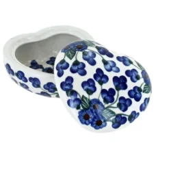 Small Heart Dish – great for your rings jewelry – keep it at your bedside or next to the kitchen sink! Makes a thoughtful gift to say you care! 4.25″ x 4.25″: The Art of Polish Pottery, as we know it today, started as local folk art centuries ago in the German province of Silesia. The first known pieces of “Bunzlauer” stoneware dating back to the 16th century were crafted by hand and decorated with a folk art stamping technique using potatoes. Original designs were inspired by the peacock feather using the colors of cobalt blue, sage green and ferrous red. These designs and colors are still the inspiration for modern day patterns.Today, skilled Polish artists still individually handcraft and hand decorate each piece using small sponges to stamp each pattern and color. After the process of mixing ingredients, molding the pottery, applying the decorations and glaze, the pottery is twice fired. This process makes the pottery extremely durable, it will not crack or chip easily, and it is perfect for use in the microwave, dishwasher, oven and freezer. Along with our pottery, we have sourced a range of absolutely beautiful hand blown glassware from Poland. It is the perfect addition to your Polish Pottery Collection!