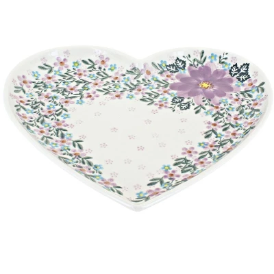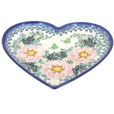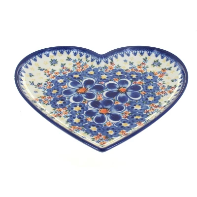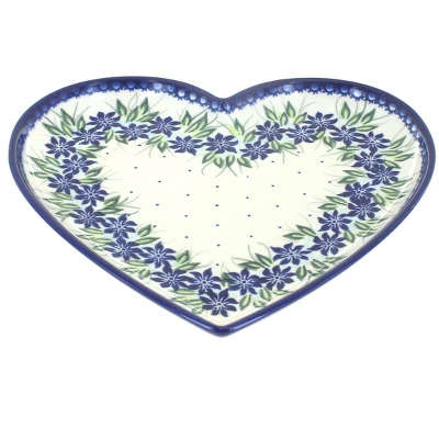 Heart Plate – perfect gift for someone special – 10″ wide by 10″ long. Great size for a sandwich and a side! The Art of Polish Pottery, as we know it today, started as local folk art centuries ago in the German province of Silesia. The first known pieces of “Bunzlauer” stoneware dating back to the 16th century were crafted by hand and decorated with a folk art stamping technique using potatoes. Original designs were inspired by the peacock feather using the colors of cobalt blue, sage green and ferrous red. These designs and colors are still the inspiration for modern day patterns.Today, skilled Polish artists still individually handcraft and hand decorate each piece using small sponges to stamp each pattern and color. After the process of mixing ingredients, molding the pottery, applying the decorations and glaze, the pottery is twice fired. This process makes the pottery extremely durable, it will not crack or chip easily, and it is perfect for use in the microwave, dishwasher, oven and freezer. Along with our pottery, we have sourced a range of absolutely beautiful hand blown glassware from Poland. It is the perfect addition to your Polish Pottery Collection!