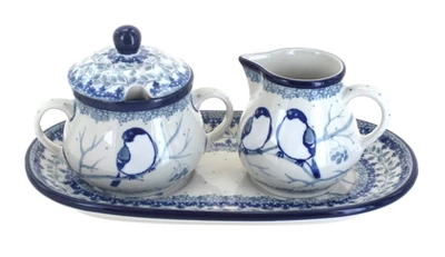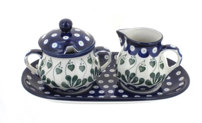 Refined ceramic cream and sugar set with tray is the perfect companion for your daily pick-me-up. Versatile designs match your decor so you can leave it out on display. Tray is 9.5 inches x 5.25 inches. Sugar Bowl-6 oz. capacity, 3.75 inches tall. Creamer-6 oz. capacity, 3 inches tall. The Art of Polish Pottery, as we know it today, started as local folk art centuries ago in the German province of Silesia. The first known pieces of “Bunzlauer” stoneware dating back to the 16th century were crafted by hand and decorated with a folk art stamping technique using potatoes. Original designs were inspired by the peacock feather using the colors of cobalt blue, sage green and ferrous red. These designs and colors are still the inspiration for modern day patterns.Today, skilled Polish artists still individually handcraft and hand decorate each piece using small sponges to stamp each pattern and color. After the process of mixing ingredients, molding the pottery, applying the decorations and glaze, the pottery is twice fired. This process makes the pottery extremely durable, it will not crack or chip easily, and it is perfect for use in the microwave, dishwasher, oven and freezer. Along with our pottery, we have sourced a range of absolutely beautiful hand blown glassware from Poland. It is the perfect addition to your Polish Pottery Collection!