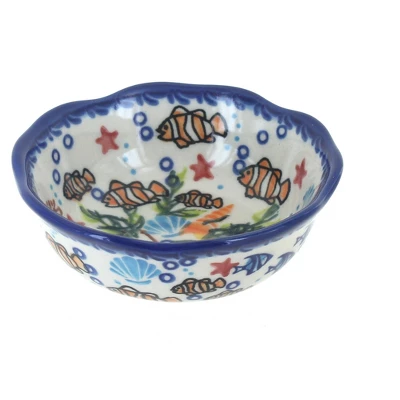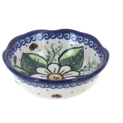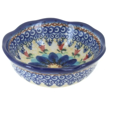 Small Scallop Bowl – great for condiments, dipping sauce – or use if as a candy dish. 4″ diameter, 1.5″ deep! The Art of Polish Pottery, as we know it today, started as local folk art centuries ago in the German province of Silesia. The first known pieces of “Bunzlauer” stoneware dating back to the 16th century were crafted by hand and decorated with a folk art stamping technique using potatoes. Original designs were inspired by the peacock feather using the colors of cobalt blue, sage green and ferrous red. These designs and colors are still the inspiration for modern day patterns.Today, skilled Polish artists still individually handcraft and hand decorate each piece using small sponges to stamp each pattern and color. After the process of mixing ingredients, molding the pottery, applying the decorations and glaze, the pottery is twice fired. This process makes the pottery extremely durable, it will not crack or chip easily, and it is perfect for use in the microwave, dishwasher, oven and freezer. Along with our pottery, we have sourced a range of absolutely beautiful hand blown glassware from Poland. It is the perfect addition to your Polish Pottery Collection!
