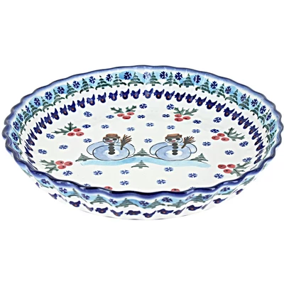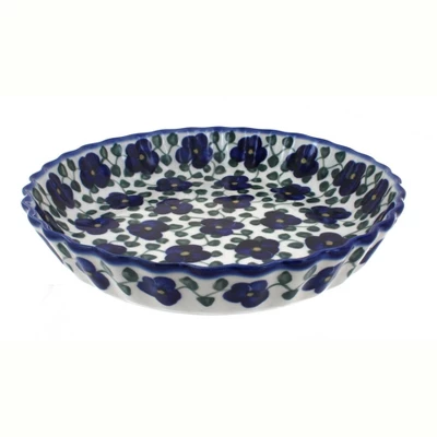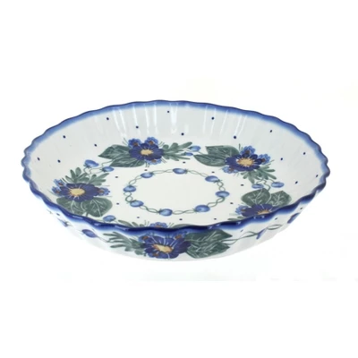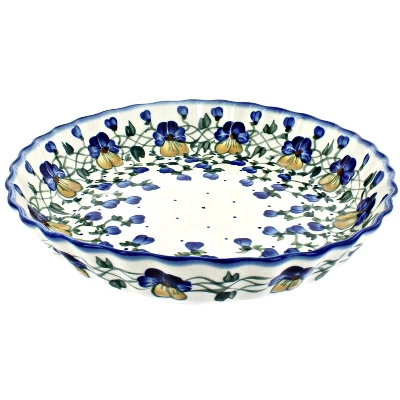 Finally, a hand-crafted pie plate designed with your recipes in mind! High fired ceramics have long been praised for their durability and even heating while baking-and ours are double glazed for a naturally non-stick finish. A charming, scalloped detail and hand-painted design ensures that you get a one-of-a-kind piece that is ready to serve straight from the oven! 10.5 inch diameter x 1.75 inches deep The Art of Polish Pottery, as we know it today, started as local folk art centuries ago in the German province of Silesia. The first known pieces of “Bunzlauer” stoneware dating back to the 16th century were crafted by hand and decorated with a folk art stamping technique using potatoes. Original designs were inspired by the peacock feather using the colors of cobalt blue, sage green and ferrous red. These designs and colors are still the inspiration for modern day patterns.Today, skilled Polish artists still individually handcraft and hand decorate each piece using small sponges to stamp each pattern and color. After the process of mixing ingredients, molding the pottery, applying the decorations and glaze, the pottery is twice fired. This process makes the pottery extremely durable, it will not crack or chip easily, and it is perfect for use in the microwave, dishwasher, oven and freezer. Along with our pottery, we have sourced a range of absolutely beautiful hand blown glassware from Poland. It is the perfect addition to your Polish Pottery Collection!