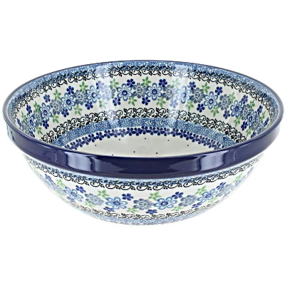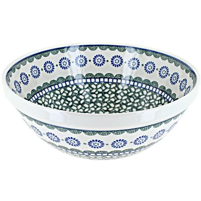 Shop our extensive collection of serving bowls for the right style and fit for your kitchen. A variety of sizes suit all your entertaining needs, and each piece is high fired for durability so you can feel at ease using these every day. 9-inch diameter x 3.75 inches deep. The Art of Polish Pottery, as we know it today, started as local folk art centuries ago in the German province of Silesia. The first known pieces of “Bunzlauer” stoneware dating back to the 16th century were crafted by hand and decorated with a folk art stamping technique using potatoes. Original designs were inspired by the peacock feather using the colors of cobalt blue, sage green and ferrous red. These designs and colors are still the inspiration for modern day patterns.Today, skilled Polish artists still individually handcraft and hand decorate each piece using small sponges to stamp each pattern and color. After the process of mixing ingredients, molding the pottery, applying the decorations and glaze, the pottery is twice fired. This process makes the pottery extremely durable, it will not crack or chip easily, and it is perfect for use in the microwave, dishwasher, oven and freezer. Along with our pottery, we have sourced a range of absolutely beautiful hand blown glassware from Poland. It is the perfect addition to your Polish Pottery Collection!