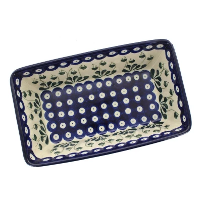 Perfect for baking cake, breads, and meatloaf. Bake, serve, and store in heat and chip resistant ceramic that is dishwasher safe for easy cleanup. Elegant, hand-painted designs showcase your dish to serve right from the pan. 8 inches long x 5 inches wide x 3 inches deep. The Art of Polish Pottery, as we know it today, started as local folk art centuries ago in the German province of Silesia. The first known pieces of “Bunzlauer” stoneware dating back to the 16th century were crafted by hand and decorated with a folk art stamping technique using potatoes. Original designs were inspired by the peacock feather using the colors of cobalt blue, sage green and ferrous red. These designs and colors are still the inspiration for modern day patterns.Today, skilled Polish artists still individually handcraft and hand decorate each piece using small sponges to stamp each pattern and color. After the process of mixing ingredients, molding the pottery, applying the decorations and glaze, the pottery is twice fired. This process makes the pottery extremely durable, it will not crack or chip easily, and it is perfect for use in the microwave, dishwasher, oven and freezer. Along with our pottery, we have sourced a range of absolutely beautiful hand blown glassware from Poland. It is the perfect addition to your Polish Pottery Collection!
