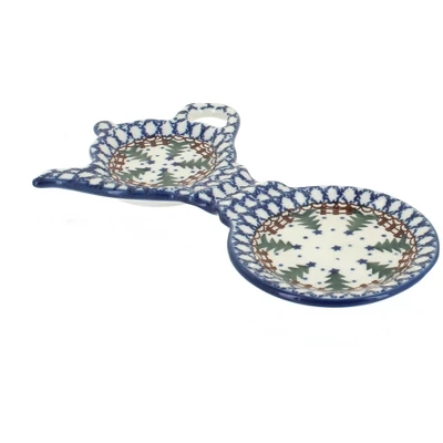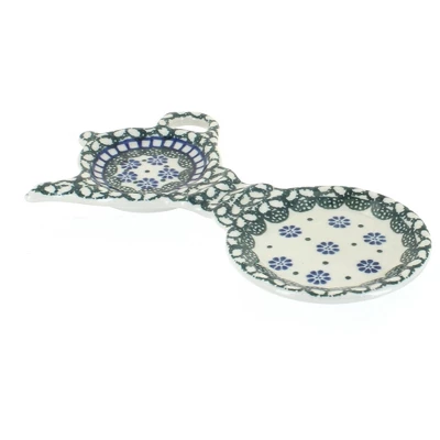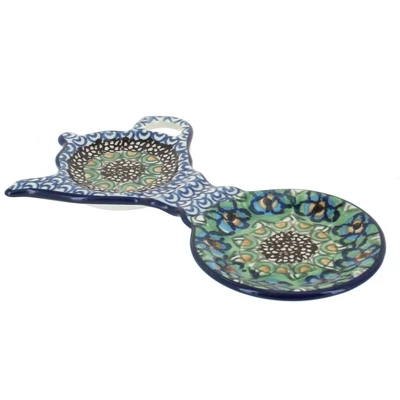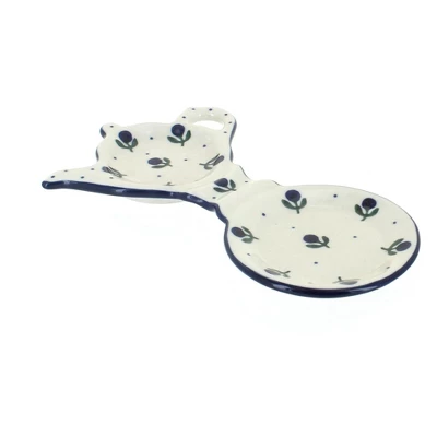 Use it as a saucer for your mug and to hold your tea bag holder or spoon rest! 8″ long The Art of Polish Pottery, as we know it today, started as local folk art centuries ago in the German province of Silesia. The first known pieces of “Bunzlauer” stoneware dating back to the 16th century were crafted by hand and decorated with a folk art stamping technique using potatoes. Original designs were inspired by the peacock feather using the colors of cobalt blue, sage green and ferrous red. These designs and colors are still the inspiration for modern day patterns.Today, skilled Polish artists still individually handcraft and hand decorate each piece using small sponges to stamp each pattern and color. After the process of mixing ingredients, molding the pottery, applying the decorations and glaze, the pottery is twice fired. This process makes the pottery extremely durable, it will not crack or chip easily, and it is perfect for use in the microwave, dishwasher, oven and freezer. Along with our pottery, we have sourced a range of absolutely beautiful hand blown glassware from Poland. It is the perfect addition to your Polish Pottery Collection!