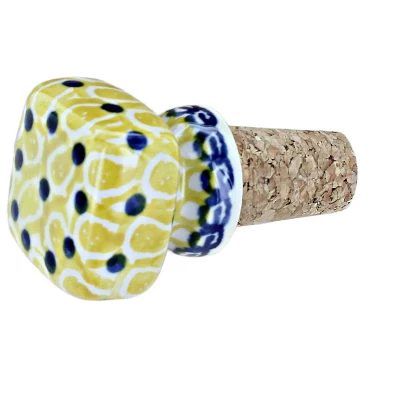 Hand painted ceramic wine corks are the perfect hosting gift and seal your wines at home for ideal freshness. 1 inch diameter x 2 inches long. The Art of Polish Pottery, as we know it today, started as local folk art centuries ago in the German province of Silesia. The first known pieces of “Bunzlauer” stoneware dating back to the 16th century were crafted by hand and decorated with a folk art stamping technique using potatoes. Original designs were inspired by the peacock feather using the colors of cobalt blue, sage green and ferrous red. These designs and colors are still the inspiration for modern day patterns.Today, skilled Polish artists still individually handcraft and hand decorate each piece using small sponges to stamp each pattern and color. After the process of mixing ingredients, molding the pottery, applying the decorations and glaze, the pottery is twice fired. This process makes the pottery extremely durable, it will not crack or chip easily, and it is perfect for use in the microwave, dishwasher, oven and freezer. Along with our pottery, we have sourced a range of absolutely beautiful hand blown glassware from Poland. It is the perfect addition to your Polish Pottery Collection!