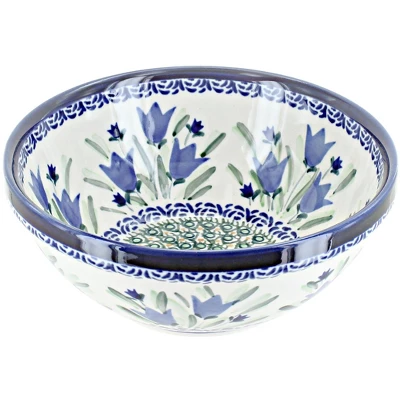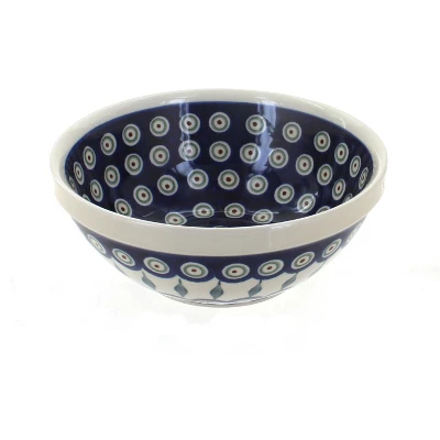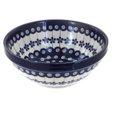 26 oz. capacity, 6.75″ diameter x 2.7″ deep. The Art of Polish Pottery, as we know it today, started as local folk art centuries ago in the German province of Silesia. The first known pieces of “Bunzlauer” stoneware dating back to the 16th century were crafted by hand and decorated with a folk art stamping technique using potatoes. Original designs were inspired by the peacock feather using the colors of cobalt blue, sage green and ferrous red. These designs and colors are still the inspiration for modern day patterns.Today, skilled Polish artists still individually handcraft and hand decorate each piece using small sponges to stamp each pattern and color. After the process of mixing ingredients, molding the pottery, applying the decorations and glaze, the pottery is twice fired. This process makes the pottery extremely durable, it will not crack or chip easily, and it is perfect for use in the microwave, dishwasher, oven and freezer. Along with our pottery, we have sourced a range of absolutely beautiful hand blown glassware from Poland. It is the perfect addition to your Polish Pottery Collection!