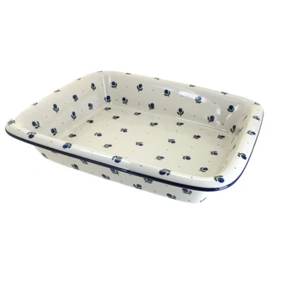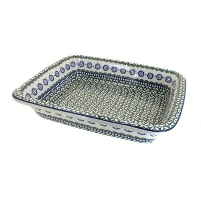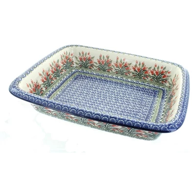 From Ceramika Artystyczna – a great size for all your baking needs – 13.5″ x 11.5″ x 2.75″ deep! The Art of Polish Pottery, as we know it today, started as local folk art centuries ago in the German province of Silesia. The first known pieces of “Bunzlauer” stoneware dating back to the 16th century were crafted by hand and decorated with a folk art stamping technique using potatoes. Original designs were inspired by the peacock feather using the colors of cobalt blue, sage green and ferrous red. These designs and colors are still the inspiration for modern day patterns.Today, skilled Polish artists still individually handcraft and hand decorate each piece using small sponges to stamp each pattern and color. After the process of mixing ingredients, molding the pottery, applying the decorations and glaze, the pottery is twice fired. This process makes the pottery extremely durable, it will not crack or chip easily, and it is perfect for use in the microwave, dishwasher, oven and freezer. Along with our pottery, we have sourced a range of absolutely beautiful hand blown glassware from Poland. It is the perfect addition to your Polish Pottery Collection!