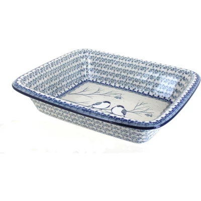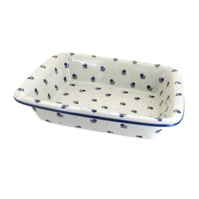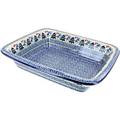 From Ceramika Artystyczna – medium size baker has a lip for easy handling – 12″ x 10.25″ x 2.75″ deep! The Art of Polish Pottery, as we know it today, started as local folk art centuries ago in the German province of Silesia. The first known pieces of “Bunzlauer” stoneware dating back to the 16th century were crafted by hand and decorated with a folk art stamping technique using potatoes. Original designs were inspired by the peacock feather using the colors of cobalt blue, sage green and ferrous red. These designs and colors are still the inspiration for modern day patterns.Today, skilled Polish artists still individually handcraft and hand decorate each piece using small sponges to stamp each pattern and color. After the process of mixing ingredients, molding the pottery, applying the decorations and glaze, the pottery is twice fired. This process makes the pottery extremely durable, it will not crack or chip easily, and it is perfect for use in the microwave, dishwasher, oven and freezer. Along with our pottery, we have sourced a range of absolutely beautiful hand blown glassware from Poland. It is the perfect addition to your Polish Pottery Collection!