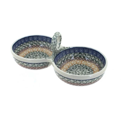 A great gift for any cook – a seasoning cellar that can be used for salt, pepper or anything you use for spicing up your favorite dish! Can also be used for dipping sauces at the table – 9.5″ x 4.75″, each dish is 4.75″ diameter! The Art of Polish Pottery, as we know it today, started as local folk art centuries ago in the German province of Silesia. The first known pieces of “Bunzlauer” stoneware dating back to the 16th century were crafted by hand and decorated with a folk art stamping technique using potatoes. Original designs were inspired by the peacock feather using the colors of cobalt blue, sage green and ferrous red. These designs and colors are still the inspiration for modern day patterns.Today, skilled Polish artists still individually handcraft and hand decorate each piece using small sponges to stamp each pattern and color. After the process of mixing ingredients, molding the pottery, applying the decorations and glaze, the pottery is twice fired. This process makes the pottery extremely durable, it will not crack or chip easily, and it is perfect for use in the microwave, dishwasher, oven and freezer. Along with our pottery, we have sourced a range of absolutely beautiful hand blown glassware from Poland. It is the perfect addition to your Polish Pottery Collection!