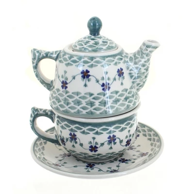 Tea for One – Teapot is a 12 oz. capacity, 4.75″ tall, cup holds 8 oz, saucer is 6.5″ diameter! Great gift for a tea drinker! The Art of Polish Pottery, as we know it today, started as local folk art centuries ago in the German province of Silesia. The first known pieces of “Bunzlauer” stoneware dating back to the 16th century were crafted by hand and decorated with a folk art stamping technique using potatoes. Original designs were inspired by the peacock feather using the colors of cobalt blue, sage green and ferrous red. These designs and colors are still the inspiration for modern day patterns.Today, skilled Polish artists still individually handcraft and hand decorate each piece using small sponges to stamp each pattern and color. After the process of mixing ingredients, molding the pottery, applying the decorations and glaze, the pottery is twice fired. This process makes the pottery extremely durable, it will not crack or chip easily, and it is perfect for use in the microwave, dishwasher, oven and freezer. Along with our pottery, we have sourced a range of absolutely beautiful hand blown glassware from Poland. It is the perfect addition to your Polish Pottery Collection!