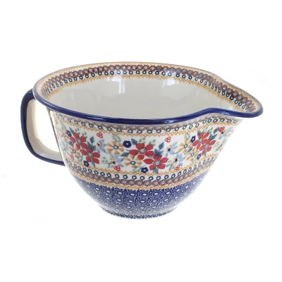 Mix up your batter for pancakes or cakes, then pour with the convenient spout! Double glazed for easy cleanup and decorated to fit your collection. 9-inch diameter x 5.5 inches deep. The Art of Polish Pottery, as we know it today, started as local folk art centuries ago in the German province of Silesia. The first known pieces of “Bunzlauer” stoneware dating back to the 16th century were crafted by hand and decorated with a folk art stamping technique using potatoes. Original designs were inspired by the peacock feather using the colors of cobalt blue, sage green and ferrous red. These designs and colors are still the inspiration for modern day patterns.Today, skilled Polish artists still individually handcraft and hand decorate each piece using small sponges to stamp each pattern and color. After the process of mixing ingredients, molding the pottery, applying the decorations and glaze, the pottery is twice fired. This process makes the pottery extremely durable, it will not crack or chip easily, and it is perfect for use in the microwave, dishwasher, oven and freezer. Along with our pottery, we have sourced a range of absolutely beautiful hand blown glassware from Poland. It is the perfect addition to your Polish Pottery Collection!