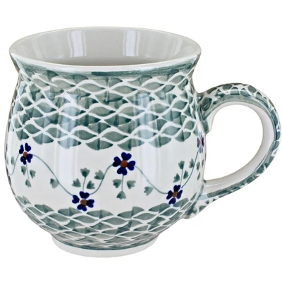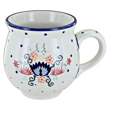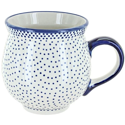Sip your morning coffee, hot cocoa, and cozy teas from our durable ceramic mugs. A contemporary silhouette and flared lip offer a comfortable and stylish option while the glaze protects from coffee stains. Dishwasher safe for convenient cleanup. 4.25 inches tall and 16 oz. capacity. The Art of Polish Pottery, as we know it today, started as local folk art centuries ago in the German province of Silesia. The first known pieces of “Bunzlauer” stoneware dating back to the 16th century were crafted by hand and decorated with a folk art stamping technique using potatoes. Original designs were inspired by the peacock feather using the colors of cobalt blue, sage green and ferrous red. These designs and colors are still the inspiration for modern day patterns.Today, skilled Polish artists still individually handcraft and hand decorate each piece using small sponges to stamp each pattern and color. After the process of mixing ingredients, molding the pottery, applying the decorations and glaze, the pottery is twice fired. This process makes the pottery extremely durable, it will not crack or chip easily, and it is perfect for use in the microwave, dishwasher, oven and freezer. Along with our pottery, we have sourced a range of absolutely beautiful hand blown glassware from Poland. It is the perfect addition to your Polish Pottery Collection!