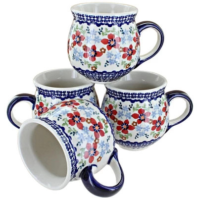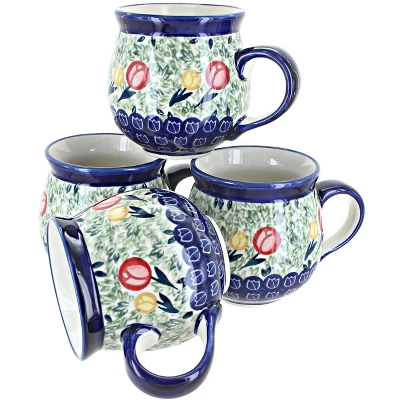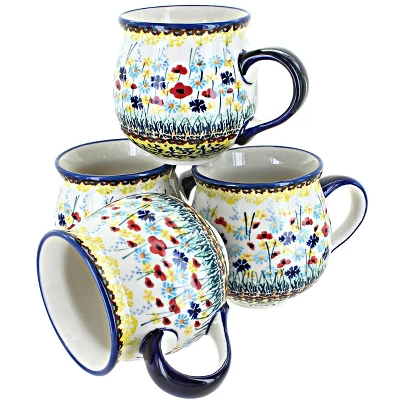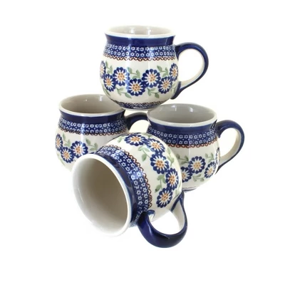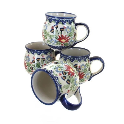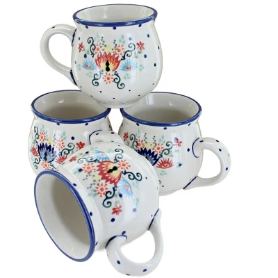 Get a complimentary 15% off discount when you buy in a set! Sip your morning coffee, hot cocoa, and cozy teas from our durable ceramic mugs. A contemporary silhouette and flared lip offer a comfortable and stylish option while the glaze protects from coffee stains. Dishwasher safe for convenient cleanup. 3.5 inches tall and 10 oz. The Art of Polish Pottery, as we know it today, started as local folk art centuries ago in the German province of Silesia. The first known pieces of “Bunzlauer” stoneware dating back to the 16th century were crafted by hand and decorated with a folk art stamping technique using potatoes. Original designs were inspired by the peacock feather using the colors of cobalt blue, sage green and ferrous red. These designs and colors are still the inspiration for modern day patterns.Today, skilled Polish artists still individually handcraft and hand decorate each piece using small sponges to stamp each pattern and color. After the process of mixing ingredients, molding the pottery, applying the decorations and glaze, the pottery is twice fired. This process makes the pottery extremely durable, it will not crack or chip easily, and it is perfect for use in the microwave, dishwasher, oven and freezer. Along with our pottery, we have sourced a range of absolutely beautiful hand blown glassware from Poland. It is the perfect addition to your Polish Pottery Collection!