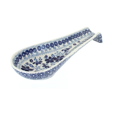 Protect your counter and stovetop from messy drips while elegant design holds tasting and serving spoons. Glazed ceramic finish wipes clean or can go in the dishwasher. 9.5 inches x 3.5 inches. The Art of Polish Pottery, as we know it today, started as local folk art centuries ago in the German province of Silesia. The first known pieces of “Bunzlauer” stoneware dating back to the 16th century were crafted by hand and decorated with a folk art stamping technique using potatoes. Original designs were inspired by the peacock feather using the colors of cobalt blue, sage green and ferrous red. These designs and colors are still the inspiration for modern day patterns.Today, skilled Polish artists still individually handcraft and hand decorate each piece using small sponges to stamp each pattern and color. After the process of mixing ingredients, molding the pottery, applying the decorations and glaze, the pottery is twice fired. This process makes the pottery extremely durable, it will not crack or chip easily, and it is perfect for use in the microwave, dishwasher, oven and freezer. Along with our pottery, we have sourced a range of absolutely beautiful hand blown glassware from Poland. It is the perfect addition to your Polish Pottery Collection!