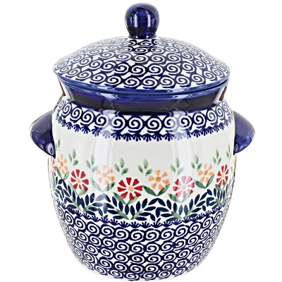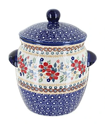 Small Canister: 8″ tall, 7 cup capacity – great for sugar or teabags! The Art of Polish Pottery, as we know it today, started as local folk art centuries ago in the German province of Silesia. The first known pieces of “Bunzlauer” stoneware dating back to the 16th century were crafted by hand and decorated with a folk art stamping technique using potatoes. Original designs were inspired by the peacock feather using the colors of cobalt blue, sage green and ferrous red. These designs and colors are still the inspiration for modern day patterns.Today, skilled Polish artists still individually handcraft and hand decorate each piece using small sponges to stamp each pattern and color. After the process of mixing ingredients, molding the pottery, applying the decorations and glaze, the pottery is twice fired. This process makes the pottery extremely durable, it will not crack or chip easily, and it is perfect for use in the microwave, dishwasher, oven and freezer. Along with our pottery, we have sourced a range of absolutely beautiful hand blown glassware from Poland. It is the perfect addition to your Polish Pottery Collection!