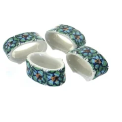 Blue Rose Polish Pottery 33 Ceramika Artystyczna Napkin Ring Set