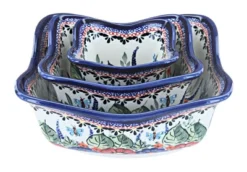 Blue Rose Polish Pottery 193012 Zaklady Square Scallop Bowl Set