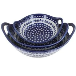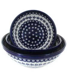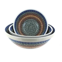 Blue Rose Polish Pottery 1400- Zaklady 3 Piece Serving Bowl Set